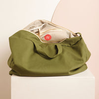 A stunning colour resembling our Australian native bush. A massive bag to hold all your goodies safe. Once it gets heavy you have the choice of using small and large handles. It’s also perfect for a parent out there who just needs more and more space inside!